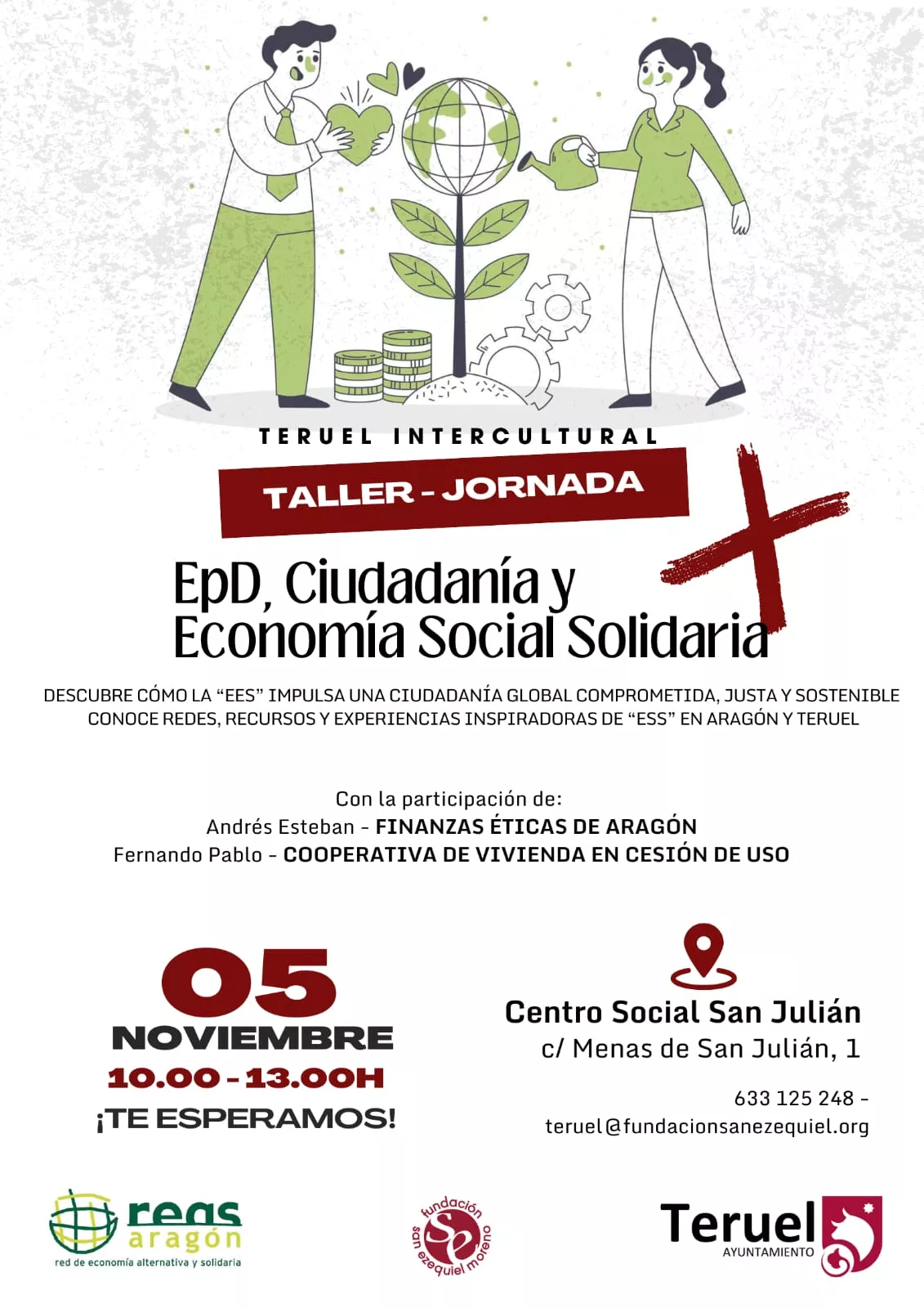 El 5 de noviembre se celebra la “Jornada de Educación para el Desarrollo, Economía Social y Solidaria” en el Centro Cultural de San Julián de Teruel. En este acto se enlazará Economía Social y Solidaria (ESS) y Educación para la Ciudadanía Global (ECG) como parte del proyecto de la Fundación San Ezequiel Moreno “Teruel intercultural, Caminos hacia una Ciudadanía Global”.